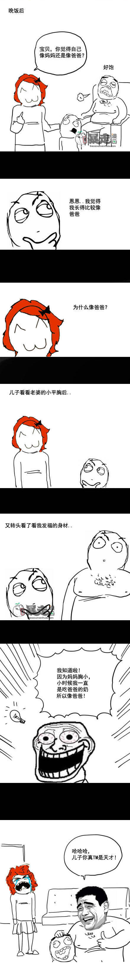 小伙伴们,你们觉得你们自己是像妈妈多一点,还是像爸爸多一点呢?小编觉得这都是因人而异的吧,今天小编为大家带来的这组暴走漫画之像谁呢中吗,小编只想说小编已被尼玛那“鬼才般”的机智给打败了。话不多说,接下来,小伙伴们就快来和小编一起来看看这组,暴走漫画之像谁呢,看看尼玛都说出了怎样令人二丈和尚摸不着头脑的语句吧!
