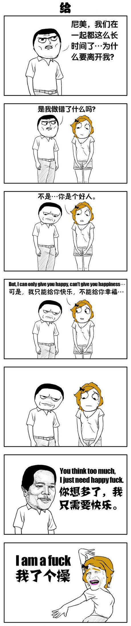 小伙伴们你们觉得情侣之间,是双方在一起快乐来得重要,还是彼此之间幸福更重要呢?今天小编为大家带来的是一组暴走漫画之给2,各位小伙伴们你们知道当尼美对尼玛说起这个话题时,尼玛是怎样回答尼美的吗?话不多说,接下来,就然我们一起来看看这组暴走漫画之给2,看看尼玛的回答吧!但小编觉得吧,这情侣之间快乐和幸福都很重要,双方都快乐了彼此才会更幸福嘛,小伙伴们你们觉得小编这话说的在理不?