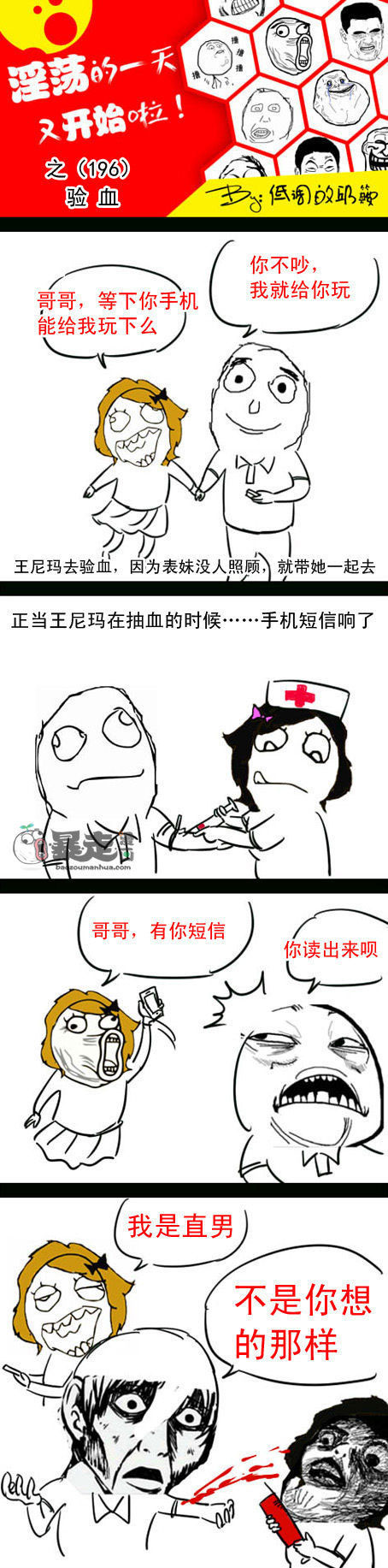 今天小编为大家带来的是一组,淫荡的一天又开始啦之验血暴走漫画。各位小伙伴们想知道在今天的这组暴走漫画中,都有哪些内涵搞笑事件发生吗?话不多说,想知道的小伙伴们就赶紧来和小编一起来看看这组,淫荡的一天又开始啦之验血暴走漫画吧!