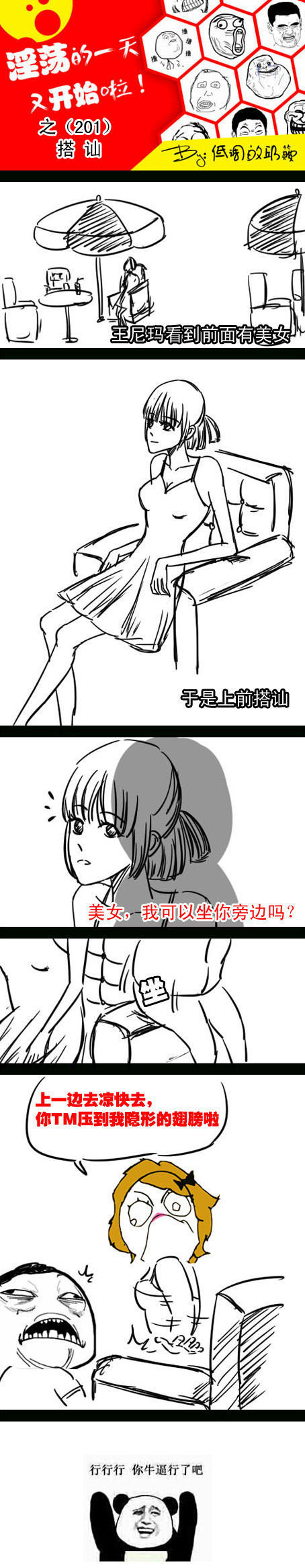 这男生啊,看到了漂亮的女孩纸就会忍不住的想上前搭讪,没办法,睡觉对方是美女呢,要知道咋们可是或在这看脸的世界里啊。今天呢,小编为大家带来的是一组,淫荡的一天又开始啦之搭讪暴走漫画。话说在今天的这组内涵漫画中,屌丝尼玛能否搭讪成功呢?话不多说,接下来,就让我们一起来瞧瞧吧!