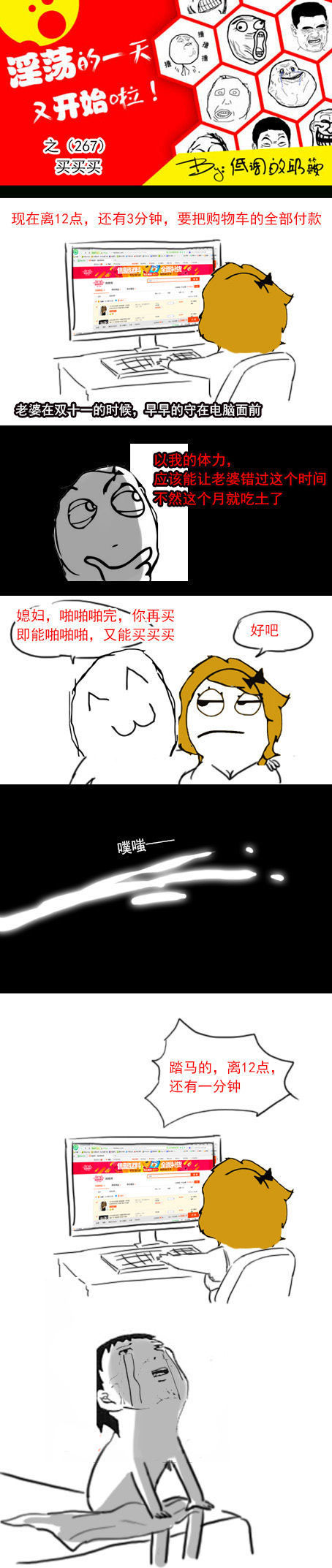 今天小编为大家带来的是一组淫荡的一天又开始啦之买买买暴走漫画。各位小伙伴们想知道在今天的这组暴走漫画中,都有哪些内涵搞笑事件发生吗?话不多说,想知道的小伙伴们就赶紧来和小编一起来看看这组,淫荡的一天又开始啦之买买买暴走漫画吧!