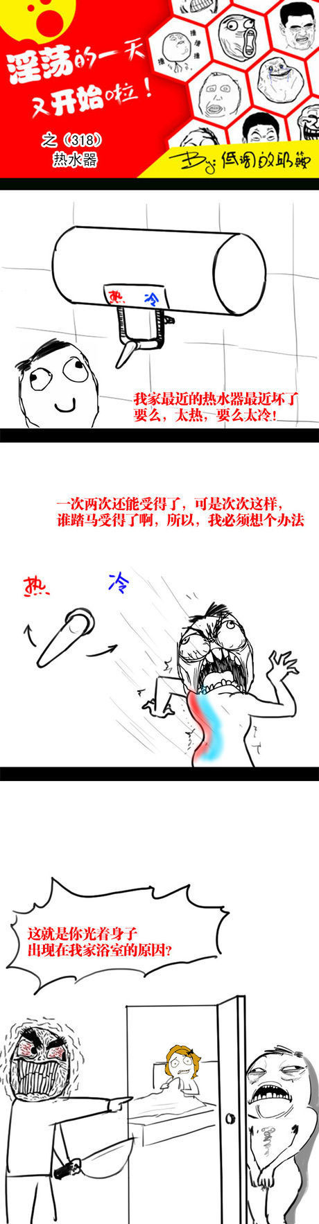 今天小编为大家带来的是一组,淫荡的一天又开始啦之热水器暴走漫画。各位小伙伴们想知道在今天的这组暴走漫画中,都有哪些内涵搞笑事件发生吗?话不多说,想知道的小伙伴们就赶紧来和小编一起来看看这组,淫荡的一天又开始啦之热水器暴走漫画吧!