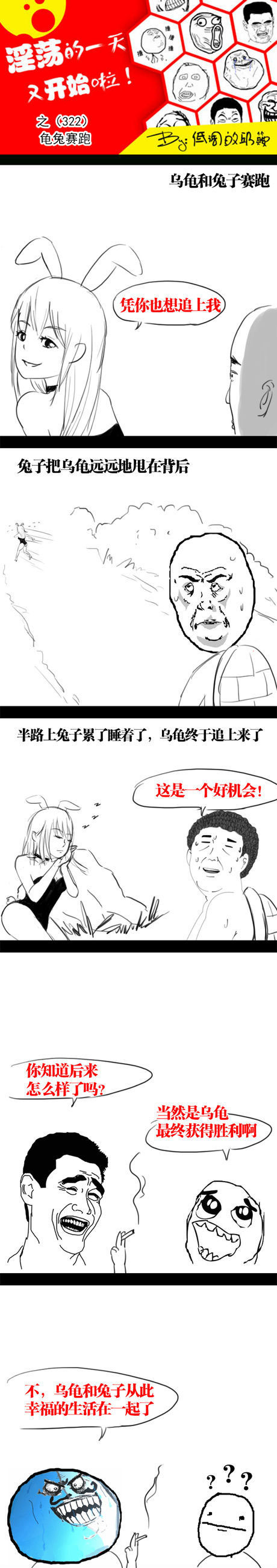 今天小编为大家带来的是一组,淫荡的一天又开始啦之龟兔赛跑暴走漫画。各位小伙伴们想知道在今天的这组暴走漫画中,都有哪些内涵搞笑事件发生吗?话不多说,想知道的小伙伴们就赶紧来和小编一起来看看这组,淫荡的一天又开始啦之龟兔赛跑暴走漫画吧!