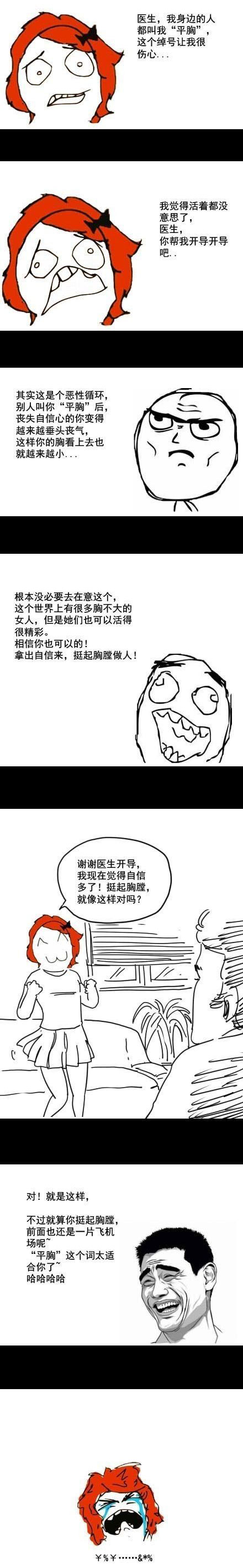 小编今天为大家带来的是一组尼爸睡前故事之心理疏导暴走漫画。在今天的这组暴走漫画中,尼美因为自己的胸部就像飞机场一样平,便被周围的朋友们取绰号为”平胸“,当然了,尼美对于这个绰号自然是很不满意啦,之后便找到了心理咨询医生寻求心理疏导 小伙伴们,你们想不想知道尼美和心理医生之间都发生了有趣的谈话呢?好了,话不多说,还是先让我们一起来看看这组暴走漫画之心理疏导,再说吧!