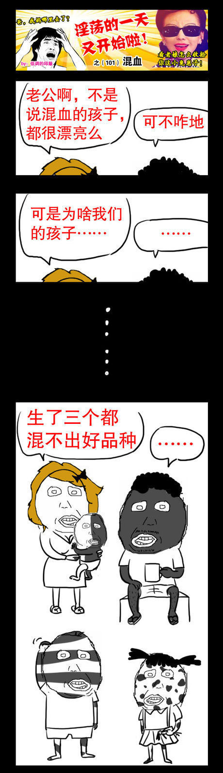 小编今天为大家带来的是一组淫荡的一天又开始啦系列之混血。混血是指两个不同人种的人生出来的孩子,也可能是父母辈中有不同血统。可是小伙伴们你们知道尼玛和尼美竟然生了3个混血宝贝吗?小伙伴们你们又想知道尼玛和尼美的混血宝贝长啥模样吗?话不多说,那么接下来,就让我们一起来看看这组淫荡的一天又开始啦系列之混血,看看尼玛和尼美混血宝贝究竟长啥模样吧!