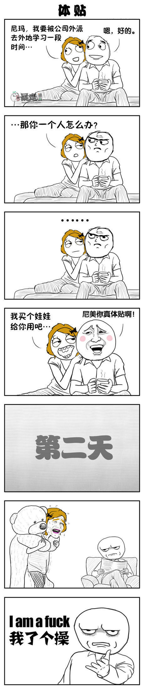 男人都想要有个体贴又懂事顾家的好老婆,恰巧屌丝尼玛就这么好命遇上了尼。今天小编就为大家大家带来了这组暴走漫画之体贴。小编看完这组暴走漫画之体贴搞笑漫画,也是有点二张和尚摸不着头脑了,这尼玛可真是有够心酸的,这尼妹到底是真体贴还是假好心呢?话不多说,欲知详情,小伙伴们就快来看看这组暴走漫画之体贴,看完就知道啦!