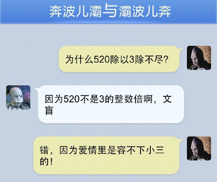 小伙伴们你们知道为我们520除以3除不尽吗? 你们知道汉子里面最有内涵的字是哪几个吗?你们知道为什么学校每次开运动会都会下雨吗?你们知道为什么女人都喜欢用谎言来拒绝自己不喜欢的男人吗?今天小编为大家带来的是一组奔波儿灞与灞波儿奔搞笑对话系列49,话不多说,接下来就让我们一起来看看这组奔波儿灞与灞波儿奔搞笑对话系列49,让我们从这组搞笑对话中获取答案吧!