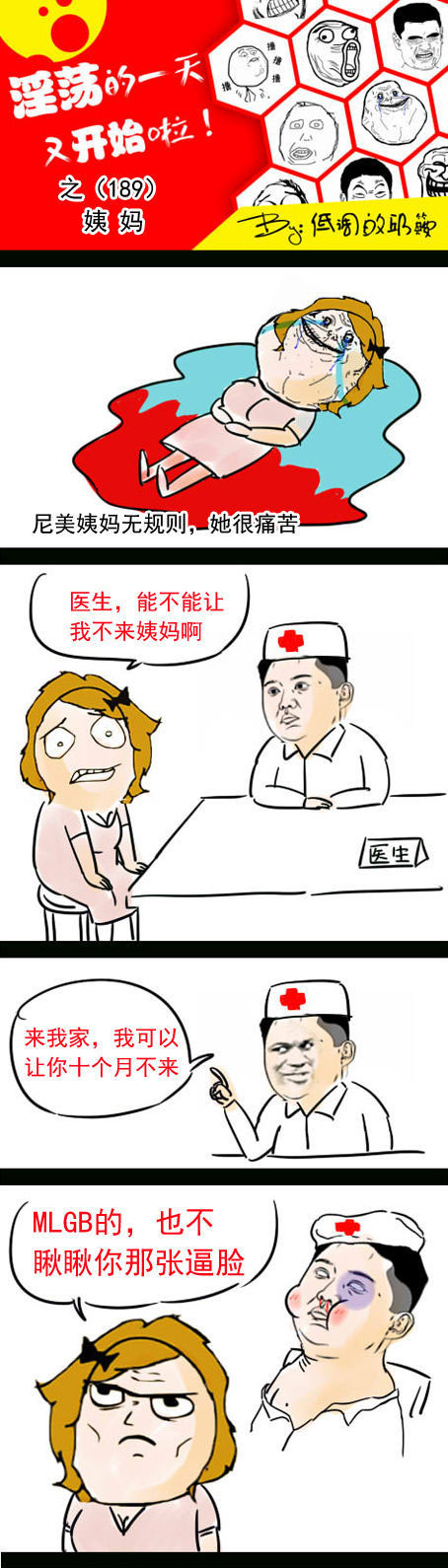今天小编为大家带来的是一组,淫荡的一天又开始啦之姨妈暴走漫画。各位小伙伴们想知道在今天的这组淫荡的一天又开始啦之姨妈暴走漫画,都有哪些内涵搞笑事件发生吗?话不多说,想知道的小伙伴们就赶紧来和小编一起来看看这组淫荡的一天又开始啦之姨妈暴走漫画吧!