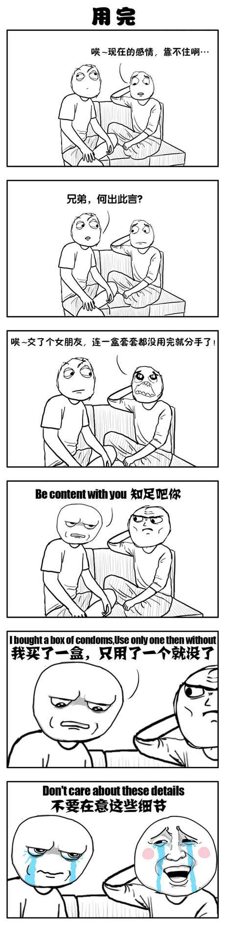 今天小编为大家带来的是一组暴走漫画之用完。各位小伙伴们想知道在今天的这组暴走漫画中,都有哪些内涵搞笑事件发生吗?话不多说,想知道的小伙伴们就赶紧来和小编一起来看看这组暴走漫画之用完吧!
