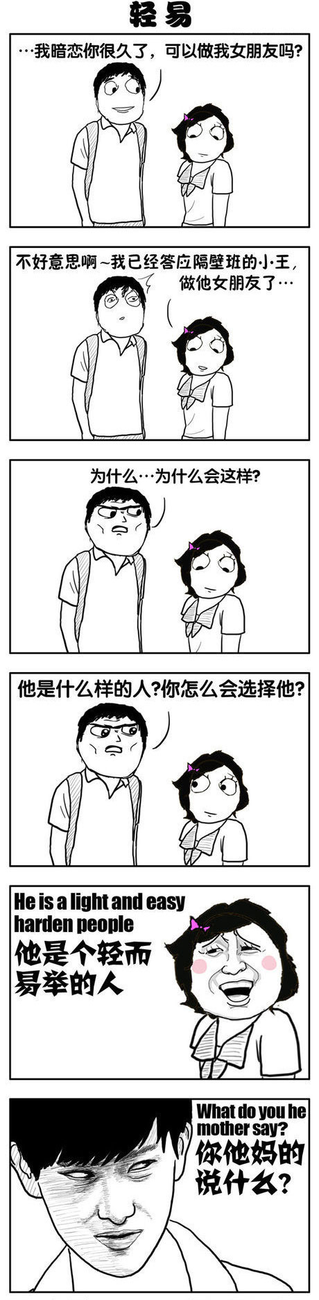 今天小编为大家带来的是一组暴走漫画之轻易。各位小伙伴们想知道在今天的这组暴走漫画中,都有哪些内涵搞笑事件发生吗?话不多说,想知道的小伙伴们就赶紧来和小编一起来看看这组暴走漫画之轻易!