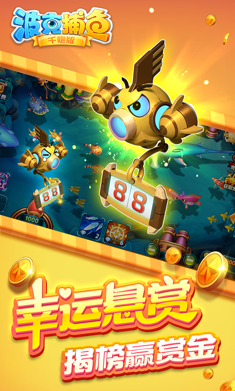 波克捕鱼赢话费版是一款休闲娱乐的捕鱼手游,多人联机捕鱼,畅玩梦幻美妙的海底世界,享受2019捕鱼赢话费的新玩法,游戏技能多样,更有神秘宝盒等你抢,点击屏幕,升级炮弹,开启华丽震屏的射击捕鱼体验,快来一起体验深海捕鱼吧!