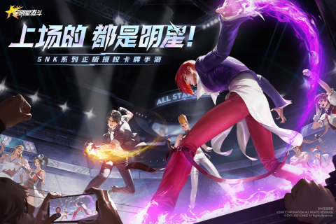《全明星激斗》是由SNK正版授权、中手游和朝夕光年联合开发的策略卡牌手游。集结SNK多系列经典格斗IP,传承热血基调,革新战斗玩法,重燃你的青春!3D卡渲等比还原经典人物,原版声优唤起青葱岁月,爆气追击打出极限combo……华丽特效让街机焕然一新、告别纸片时代!明星跨时空组队,爆发火流、刀剑流、平推流……超多流派随心养成,卡牌功能性强,每位格斗家都是出奇制胜的法宝!格斗永存,一起在游戏中重走青春路