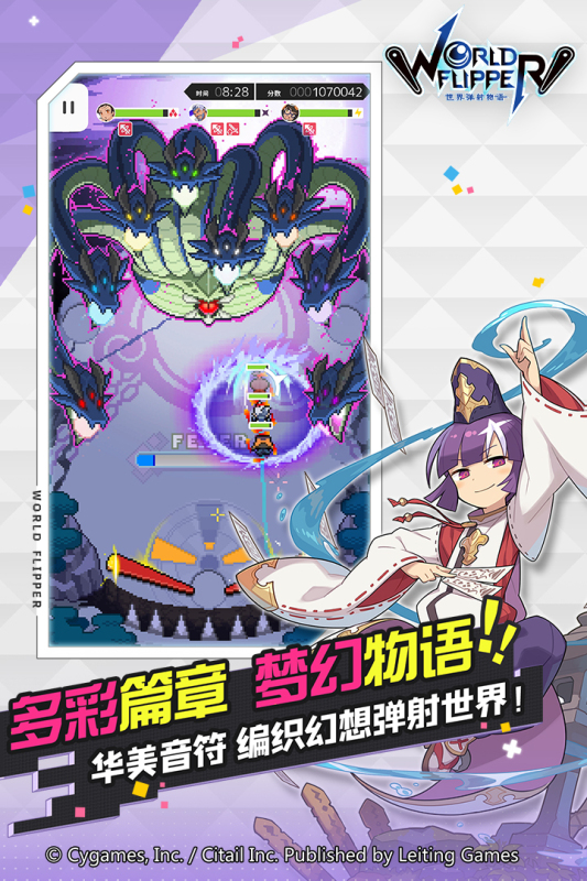 《世界弹射物语》(World Flipper)是一款由Cygames和其子公司Citail共同开发的动作手游新作,在本作中,玩家将通过瞄准目标,弹射角色来打败敌人。游戏中有着多种多样的角色,巧妙地利用不同角色的技能和特性,使出精彩的组合技,来华丽的打败敌人吧。同时,玩家还可以通过多人合作的方式,与伙伴一同挑战强大的领主,赢取更加丰盛的奖励!