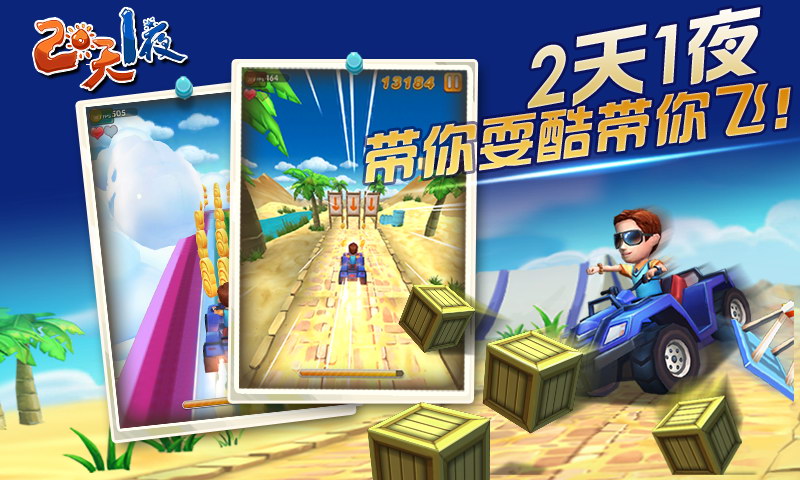 《两天一夜》是由东方卫视节目官方唯一授权开发的一款休闲跑酷类游戏。玩家可以在游戏中扮演节目秀中的各位男神,畅游在各集节目的场景中,收集道具完成任务,体验各种不一样的惊险!
