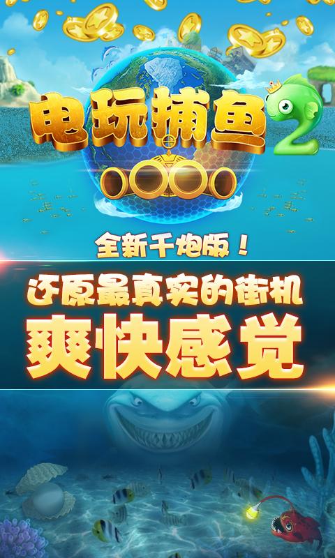 电玩捕鱼2完美升级街机捕鱼玩法!万炮齐发!将锁定的鱼儿一网打尽!称霸街机捕鱼达人游戏界,一战成名! 定屏锁定目标鱼群!急速炮弹尽情捕获!超级武器霸凌海上,单刀赴会激战各大Boss!最强引擎渲染战斗特效,这就是电玩捕鱼2!尽情释放捕鱼超能量!
