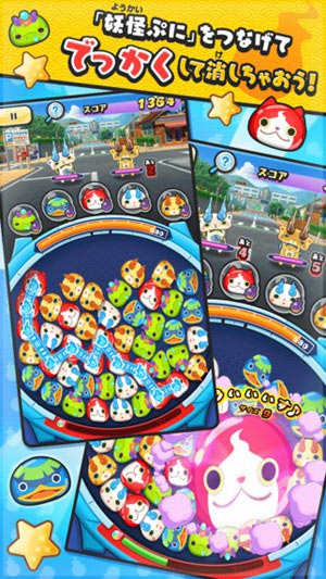 《妖怪手表PuniPuni》是一款由Level-5 Inc.开发的超萌休闲益智游戏,本作主打转珠消除玩法,光是这样独特的质素就已经与市面上枯燥乏味的消除游戏彻底划分开来。在游戏中,玩家可以同时操控五个妖怪,通过画线连接来达到消除并攻击敌人的目的,多次消除还能累积释放威力巨大的Combo连击。同时,游戏还兼具收集、养成的元素,不同的妖怪佩戴不同的必杀技,玩家可以通过拼命搜集增强自身实力。