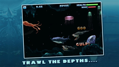 掠食各种鱼类、游泳者、渔夫,从幼仔成长到10吨的大白鲨!与其它鲨鱼、潜水艇、以及更多奇奇怪怪的深海生物作战,获得高分! 完成50个任务,寻找宝物取得金币与宝石,用来升级你的鲨鱼或者购买特殊救生道具。逐渐解锁更多水下凶猛野兽:灰鲭鲨、锤头鲨、虎鲨和无敌的大白鲨!