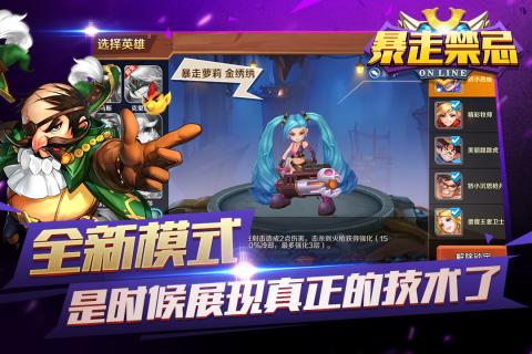 《暴走禁忌》是一款全新横版5V5休闲竞技MOBA手游;无装备,无兵线,无符文,无天赋,注重100%的公平竞技,将MOBA游戏推向新的领域。地图中还有各种道具、机关,能形成各种丰富的配合和套路,策略千变万化,突破一成不变的推塔玩法。怀旧马里奥风格的打野!每个英雄只有一个技能,手残星人也能玩好了!不氪金、简单一点、轻松一点、少一点套路、多一份欢乐!说的好不如玩的好,快来体验吧!