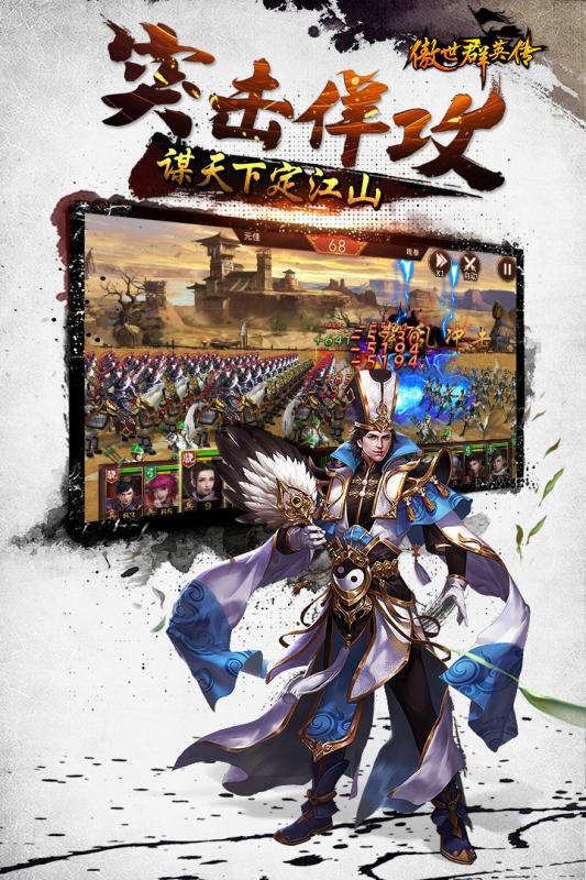 旌旗蔽空的千人战场,重示三国乱世的尔虞我诈,别出心裁的卡牌模式,使东汉猛将尽收麾下!行军布阵任意搭配,合纵连横聚贤终成霸业。武将培养、天书系统为各路猛将勇霸天下,装备锻造、饰品雕琢领万代群雄再战辉煌。纵乱世几变春秋,御天下令万兜鍪!让战国的烈焰复燃,创造属于自己的傲世三国!